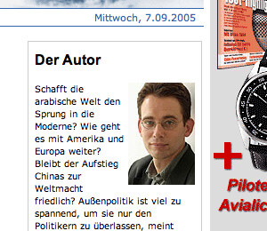 was mich dann aber doch wundert: die tagesspiegel-blogs sind nicht nur grottenschlecht und langweilig, sondern auch noch mit unerträglicher arroganz gewürzt. als spezialist für arrogantes abwatschen (u.a. von anderen zeitungen) scheint sich clemens wergin berufen zu fühlen. erst lästert er aus dem glashaus über die blogs der süddeutschen (wer im glashaus und der dritten reihe sitzt, sollte im keller ficken) und jetzt betrachtet er faktenverdrehend und selbstgerecht die unglaubliche weitsicht und pro-amerikanische weisheit des tagespiegels. wo henryk m. broder wenigstens noch lesenswert und unterhaltsam jeden gedanken an klima- und umweltschutz wegbasht, schlägt der „meinungsredakteur“ des tagesspiegels einfach nur hysterisch und unendlich langweilig um sich und macht sich abschätzig gedanken um die anatomie seiner kollegen. ich spare mir gedanken um die anatomie von herrn wergin, sein foto im weblog sagt da eh genug drüber aus.