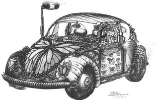es ist zwar keine karikatur was don stewart da gezeichnet hat, aber ein bisschen sieht es aus wie ein vw käfer. die radikaljuristischen markenwächter des vw-konzerns sahen davon allerdings ihre gefühle, bzw. ihre rechte verletzt und forderten den künstler dazu auf sein werk zu verbrennen vernichten und für bereits verkaufte kopien ablass lizenzgebühren zu zahlen.