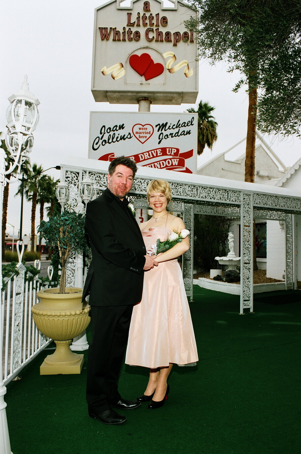 als kapelle suchten wir uns die „a little white wedding chapel“ (wikipedia link) aus, einerseits weil uns die damals schrottige website gefiel und anderwerseits wegen roseanne, die uns ein hochzeitspaket-angebot schnürte und während des beratungsgesprächs mal kurz („excuse me for a moment“) an den autoschalter ging, an dem gerade ein auto vorgefahren war, um dort eine autoschalter-hochzeit zu abzuwickeln, bzw. zu koordinieren. als sie zurückkam, sagte sie uns, an das kind gerichtet: „can you do me a favour? never marry in a car!“.