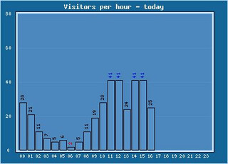 abgesehen davon, dass es heute ein besucherschwacher tag ist, überrascht mich meine zugriffs statistik doch immer wieder. um 11, 12, 14 und 15 uhr kamen jeweisl genau 41 besucher. respekt liebe besucher, wie kriegt ihr sowas bloss immer hin?