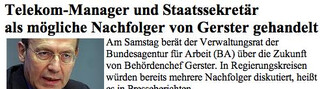 die netzeitung meldet dass ein telekom manager als gerster nachfolger gehandelt werde.