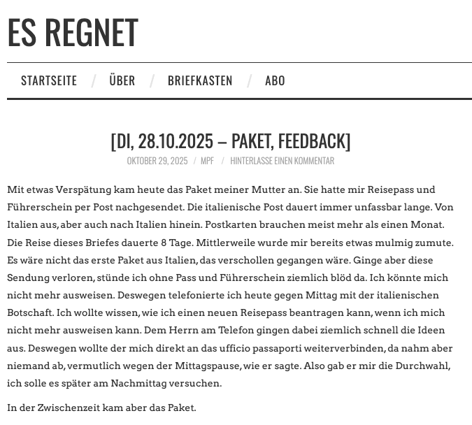Auf dem Rückweg von der Runde mit der Hündin traf ich zwei junge Männer mit ihren Postfahrrädern in meiner Straße. Ich hielt sie gleich an und …