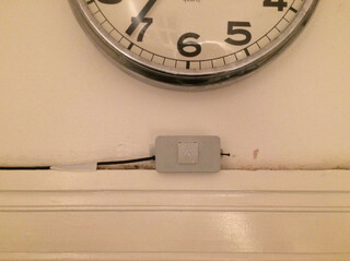 das ist (noch) nicht besonders schön, funktioniert aber zuverlässig. das nächste projekt, was mir natürlich erst eingefallen ist, als das ding so, halb festgenagelt an der wand hing: der bewegungssensor kann auch in die (ikea) uhr darüber wandern. hinter dem ziffernblatt ist ausreichend luft um die elektronik und kabel unterzubringen und der PIR-sensor könnte über ein loch im ziffenblatt nach draussen gucken. nur auf den linsen-dom müsste ich verzichten. eben habe ich das nochmal ausprobiert und die glasscheibe mit zwei lagen tesa-film simuliert; der sensor ist dann immer noch sehr empfindlich und büsst ein bisschen seiner vorher beinahe 180° umfassenden blickwinkels ein — funktioniert aber.