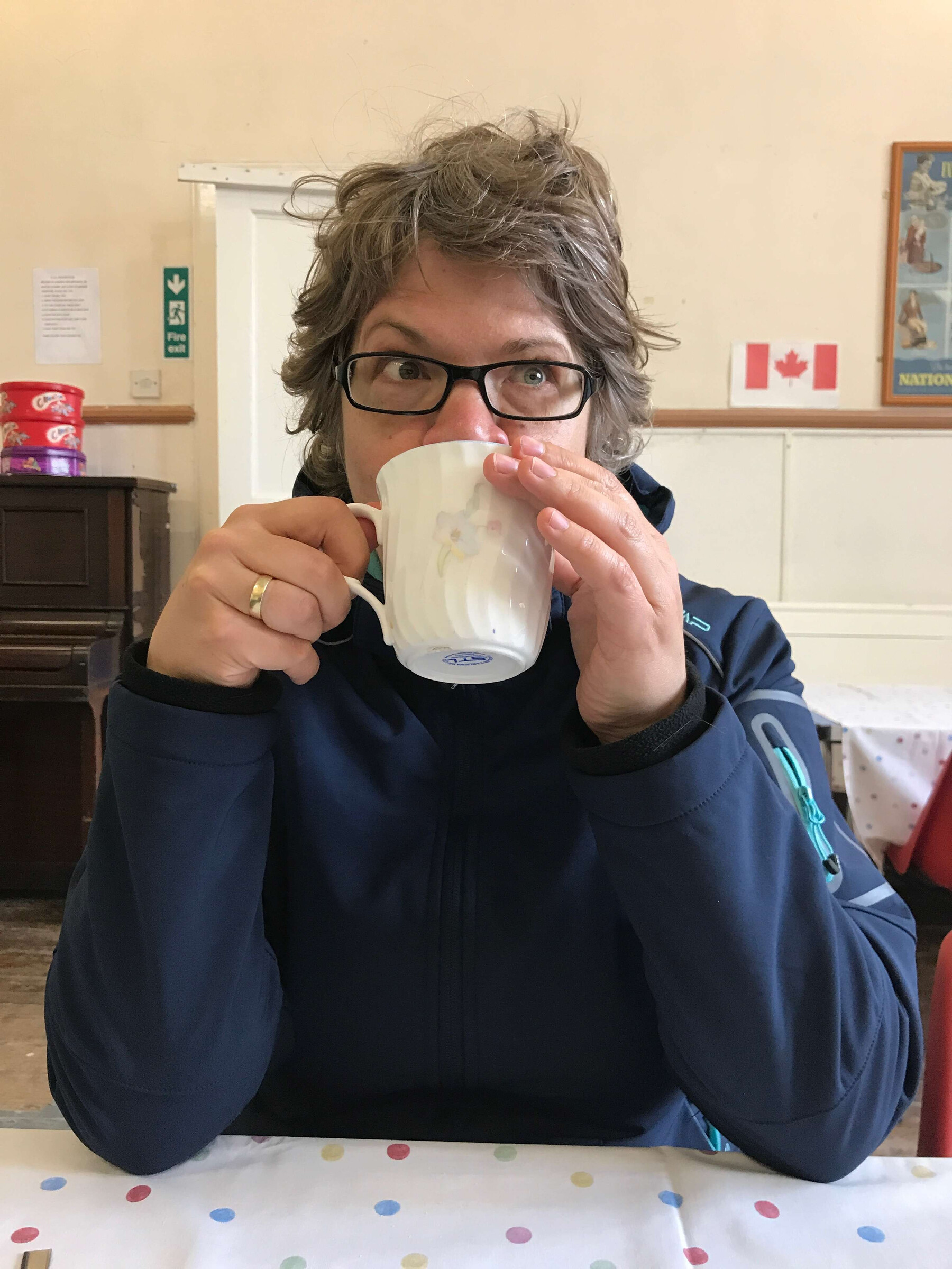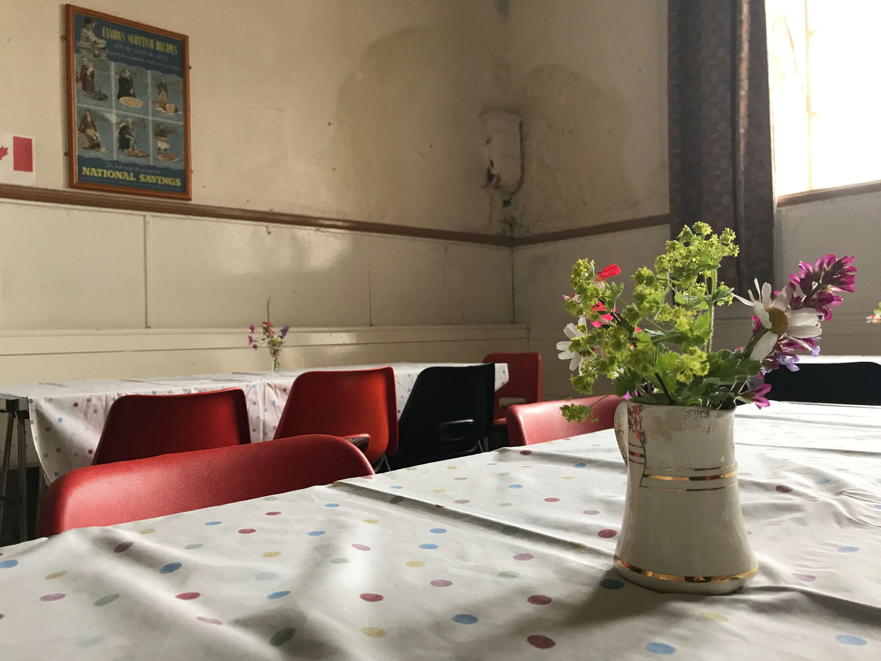 während wir zwei becher tee bestellen verschwinden mary und alan im nebenraum. wir sitzen im halbdunkel und sehen teeschlürfend ein paar älteren damen in kittelschürzen dabei zu wie sie um uns herum plastikstühle zurechtrücken und blumenvasen aufstellen.