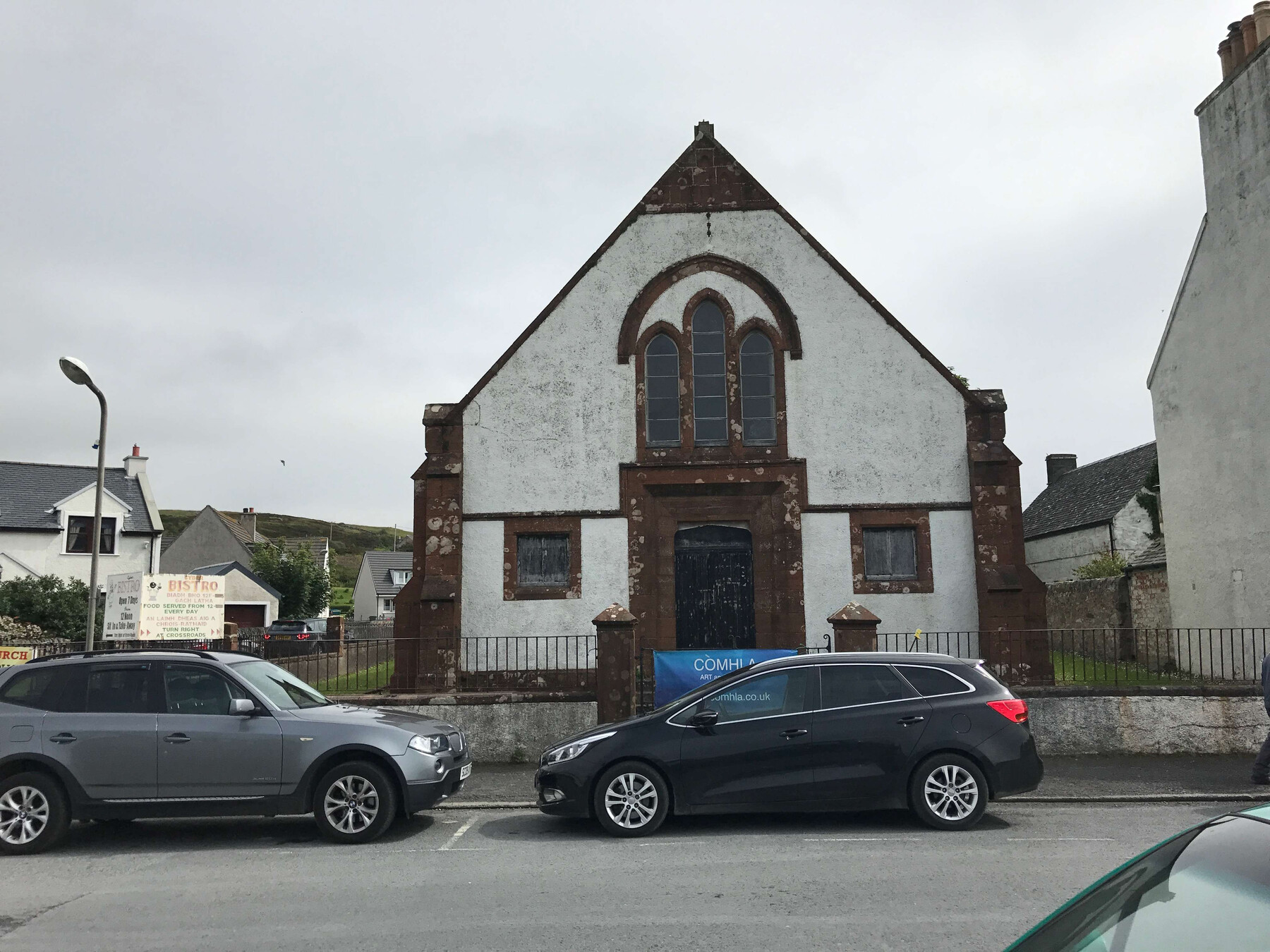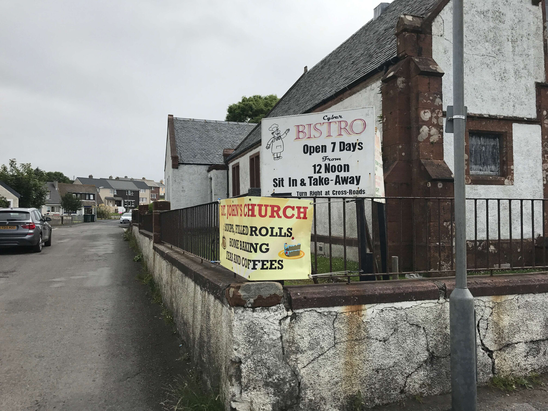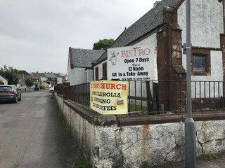 bei der abreise von islay parken wir unser verkacktes auto irgendwo in port ellen und machen uns auf die suche nach einem tearoom. es ist kurz vor neun und unsere fähre geht um zwölf uhr. ich hab das „cyber bistro“ rausgesucht, von dem ich irgendwo gelesen hatte, dass es ganz gut sein soll, das hat aber noch zu.