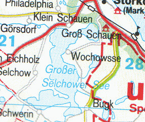 Ich hätte dann noch ein Wörtchen zu reden mit dem Menschen, der für die „ADAC LänderKarte Berlin und Brandenburg“ die Entscheidungen verantwortete, an welche Straßen die grünen Striche kommen, die sie zur „landschaftlich schönen Strecke“ aufwerten. Das ist, wenn man so einen Wochenendausflug macht, ja keine ganz unwichtige Information: Man guckt sich in einem Reiseführer zwei, drei schöne Ziele aus und versucht sie so miteinander zu verbinden, dass man möglichst viele grün markierte Straßen benutzt. So mache ich das jedenfalls.