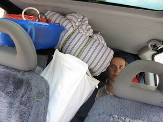 wir liehen uns den vw lupo meiner mutter und los. man ahnt nicht, was in so einen lupo alles reingeht. neben 3 personen (vater, mutter, kind) noch ein hauszelt, ein paddelboot, ein kühlschrank, tisch, 3 stühle, sonnensegel, strandmuschel, eine kochplatte, diverse töpfe und geschirr, eine hängematte, 4 reisetaschen mit klamotten und luftmatratzen. fremde menschen auf der strasse applaudierten.