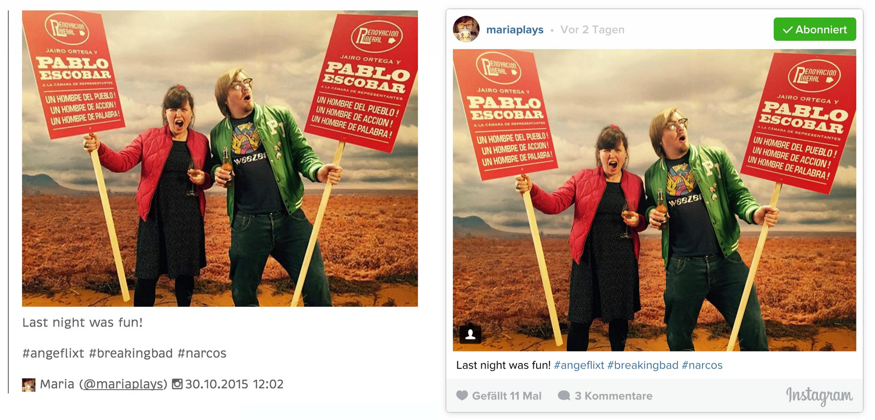 das gleiche gilt für instagram einbettungen, bei denen ich das bild durch ein bisschen zauberei allerdings selbst ausliefere: