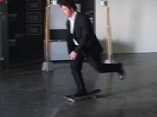 man muss sich das mal vorstellen; ein dicker mann im anzug, den bürgersteig auf einem skateboard ein wenig langsamer runterratternd als die johlende meute neben ihm, gekleidet in mit hinten runterhängenden hosen und basecaps. hätte ich es gesehen, ich würde noch heute meinen kopf schütteln.