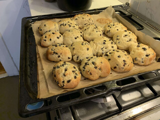 diese rosinenbrötchen habe ich in den letzten monaten sehr, sehr oft gebacken. einerseits weil sie sehr lecker sind und andererseit … hm, eigentlich gibt’s kein andererseits. die sind einfach lecker.