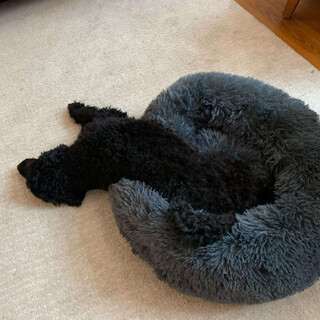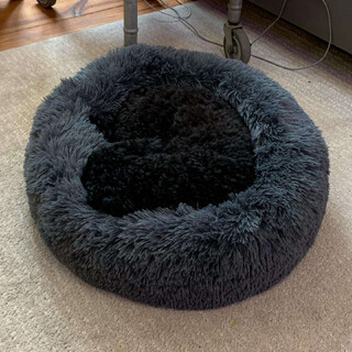 obwohl einen lieblingsplatz hat sie, ihren flauschigen mini-donut. den haben wir ihr vor einem jahr geschenkt und leider hielt sie ihn für ein tolles spielzeug, das man durch die wohnung zerren und berammeln kann. als konsequnz verschwindet der donut dann immer und taucht erst wieder auf, wenn sie tiefenentspannt ist. dann liegt sie stundenlang drin zusammengerollt oder drüber gestreckt.
