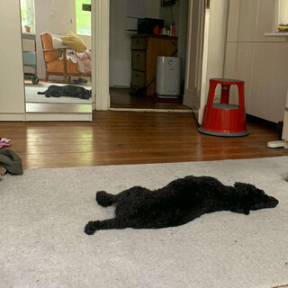 Seit das Tier in meinem Zimmer schläft, schläft so etwas wie eine Grundspannung mit mir mit. Vor allem morgens, wenn ich noch nicht richtig wach bin, aber nicht mehr schlafe. Wenn die Hündin mitbekommt, dass ich wach bin, dann wird sie aufgeregt und steht von ihrem Bettchen auf. Sie kommt zu mir, wedelt den Schwanz und leckt an Gliedmassen, die unter der Decke hervorlugen. Das versuche ich um jeden Preis zu vermeiden. Wenn ich morgens also halbwach bin, bin ich so sehr darum bemüht, mich schlafend zu stellen, dass ich total verkrampfe.