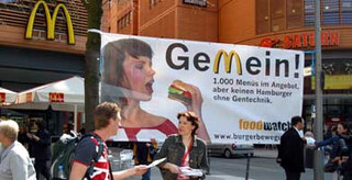 mir eigentlich egal ob die rinder im big-mäc mal genveränderten soja gefressen haben, aber sagen sollten die einem das schon. andererseits weiss man ja bereits seit dem glatt gelogenen „reinheitsgebot“ der burger „buns“ was macdonalds von seinen kunden hält: nix, die sind eh zu blöd um sowas komplizieres zu raffen. wenn bloss die big-mäc sosse nicht so verdammt lecker wäre.