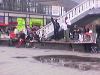 immer wieder nett, wie die unterschiedlichsten menschen am alexanderplatz nebeneinander koexistieren.