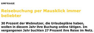 spargel schlagzeilt: „reisebuchung per mausklick immer beliebter“.