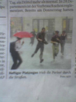 kalauer-bildunterschrift heute im tagesspiegel: „heftiger platzregen trieb die pariser durch die strassen.“