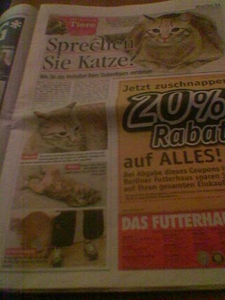 was in so ei­ner kat­ze drin ist in­ter­es­siert na­tür­lich kei­nen. wohl aber of­fen­sicht­lich die kat­ze an sich als „con­tent“. die pa­pier­nen me­di­en und wir ar­ro­gant-blog­ger hal­ten kat­zen-bil­der ja für ein ver­ach­tens­wer­tes phä­no­men des blog­dings. stimmt aber gar nicht. zur zeit ist ganz ber­lin voll mit rosa und lila kat­zen(fut­ter) wer­bung und wenn man ge­nau hin­guckt sind auch die pro­le­ten-ma­ga­zi­ne.