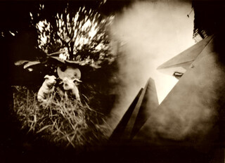 die galerie merid in stuttgart versteigert alle paar wochen zwei löcher einer doppelloch-camera obscura bei ebay, wobei die beiden höchstbietenden die kamera nacheinander zugeschickt bekommen und jeweils eine hälfte des filmes belichten. mit anderen worten: man kann auf ebay das recht ersteigern ein photo nach wahl mit einer camera-obscura zu erstellen. der witz ist, dass sich das eigene foto mit dem eines fremden, optimalerweise aus einem anderen teil der welt, überschneidet und man am ende einen abzug („kunstdruck“) des fertigen bildes bekommt.
