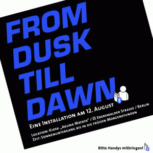 einen etwas anderen ansatz verfolgen ein paar studenten der fh potsdam. am samstag den 12. august zeigen sie am u-bahnhof eberswalderstrasse eine installation die mit den aktivierten bluetooth handies der passanten oder zuschauer interagiert: from dusk till dawn.