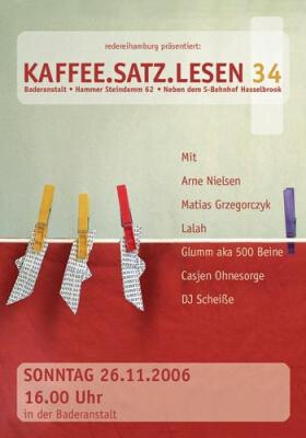 eine veranstaltung auf der jemand auftritt der sich „dj scheisse” nennt sollte man meiener meinung nach nicht verpassen. vieleicht bietet sich ja auch gelegenheit eins der 500 beine um verzeihung zu bitten weil ich mal an eins der 500 gepinkelt habe. sicher ist, am 26.11 werde ich wieder ein wenig in den zuschauerreihen lauschen und dösen.