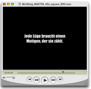 weil man ja überall liest (dwdl, spon, stern, etc) am ende des bildblog-werbe-spots stünde „Jede Lüge braucht einen Mutigen, der sie zählt“ folgender screenshot. am ende des spots steht: bildblog.de.