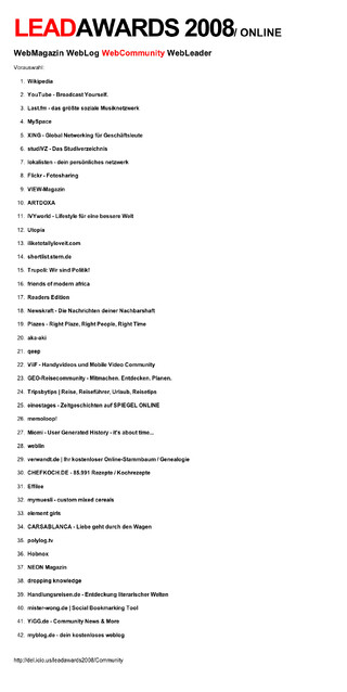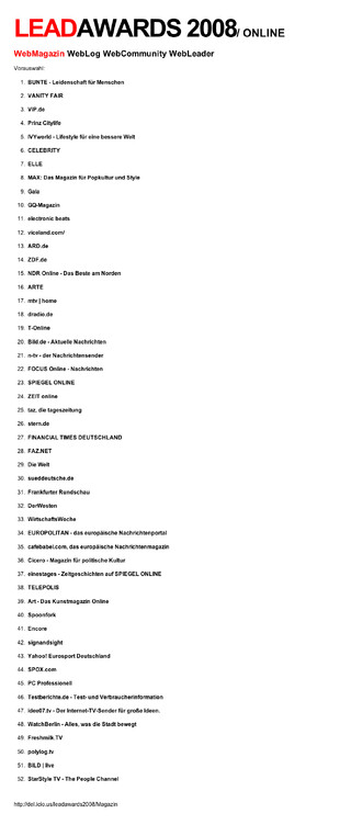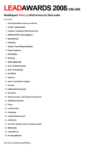 keine ahnung ob das für die öffentlichkeit bestimmt ist, aber die vorauswahlen für die leadawards 2008 kann man sich hier anschaun.