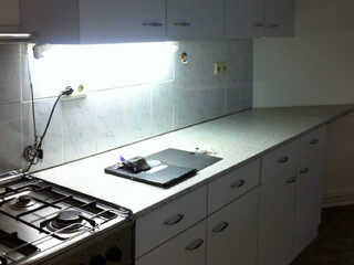 zu weihnachten hab ich mal wieder ne küche gebaut, wie vor zwei jahren, nur diesmal in berlin. gekauft haben wir das ding trotz der expliziten warnung des spiegels bei ikea, für ungefähr 1500 euro. aufgebaut haben wir das ding über weihnachten, nachdem wir die raufasertapete abgekratzt haben, neu gestrichen und einen neuen PVC-boden haben auslegen lassen.