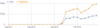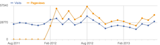 das sind laut piwik die monatlichen besucherzahlen dieser website bis ende juli 2013 (siehe auch hier). man sieht dass die monatlichen besucherzahlen um die 28tausend herumschwenzeln, was eine recht mikrige zahl von knapp 900 websitebesuchern pro tag macht. per RSS liest nochmal die gleiche anzahl leser mit.