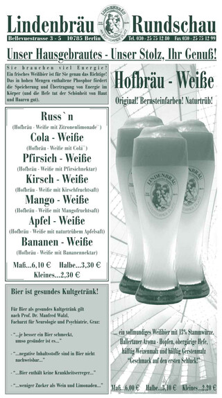 bier-poesie auf der speisekarte (und wahrscheinlich 5000 weiteren) der lindenbräu-mikrobrauerrei am potzdammerplatz: