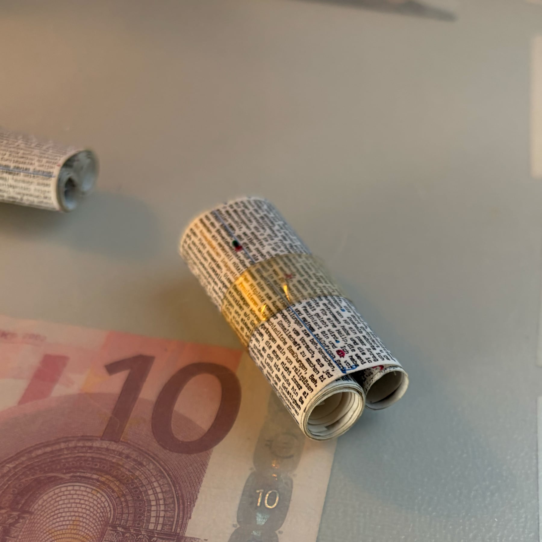 alt-text: foto eines rollbaren pfuschzettels meiner mutter aus den späten 70ern oder frühen achtzigern mit sehr klein-kopierten schrift