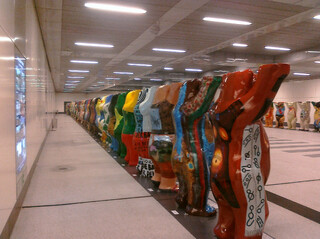 ist das ein ausdruck der zeit, dass man die landschaft mit hohlen körpern vollstellt, mit nix drin, aber einer geschwätzigen, bunten, aufgemalten hülle? und warum häufen sich diese kulissen gerade am schlossplatz, in der mitte berlins?