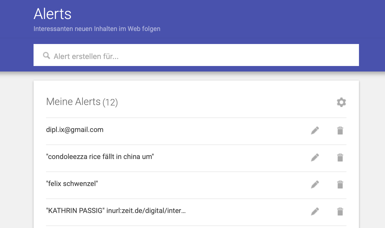 ich habe vor 10 oder 20 jahren ein paar google alerts aufgesetzt — hauptsächlich aus ego-google-gründen — die nach wie vor funktionieren. heute habe ich mal auf den link „Mehr Ergebnisse sehen“ in der email geklickt und habe gesehen …