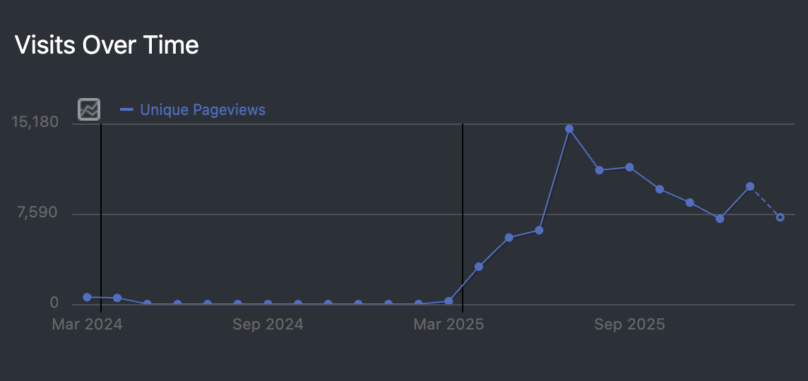 die matomo-statistiken zeigen: wer regelmässig schreibt, wird auch gelesen. vorletzten und diesen monat waren es um die 7000 (unique) pageviews, im letzten monat gab es einen kleinen ausreisser nach oben. konstante besucherlieferanten sind buddenbohm-und-soehne.de (400-600 pro monat) und rivva (100-200 pro monat).