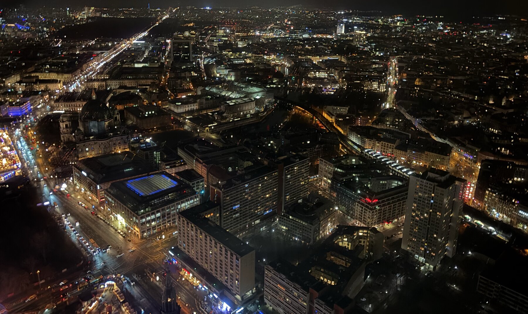 alt-text: blick aus dem fernsehtum-restaurant aufs dom aquareé