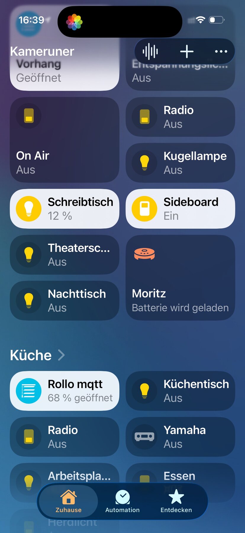 alt-text: screenshot der home.app, der die home-bereiche kinderzimmer und küche zeigt