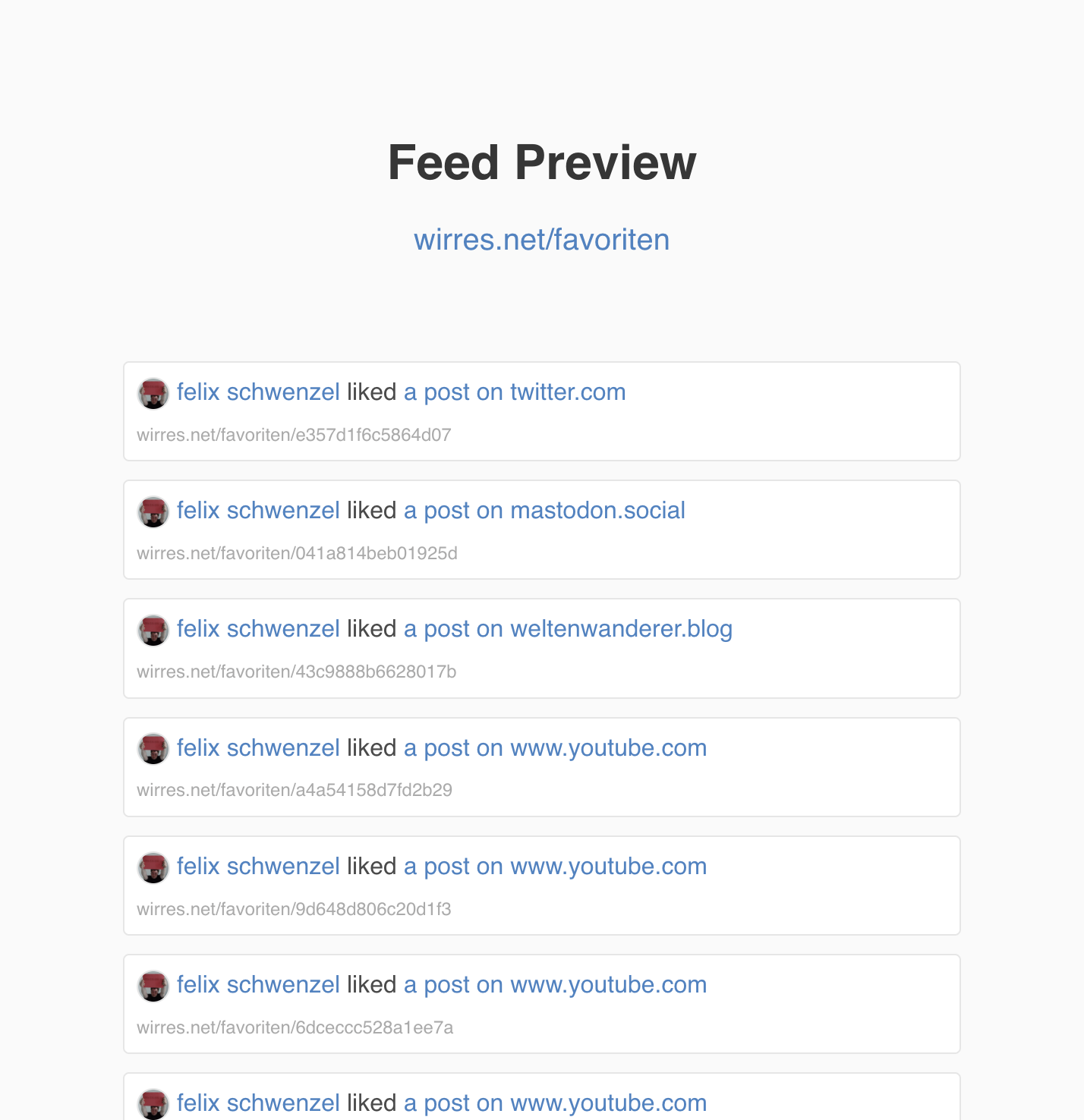 das schöne an den eingebauten mf2-microformaten ist auch, dass man mit geeigneten readern auch meinen favoriten- oder bookmarks-strom abonnieren könnte, obwohl ich dafür noch kein RSS gebaut habe.