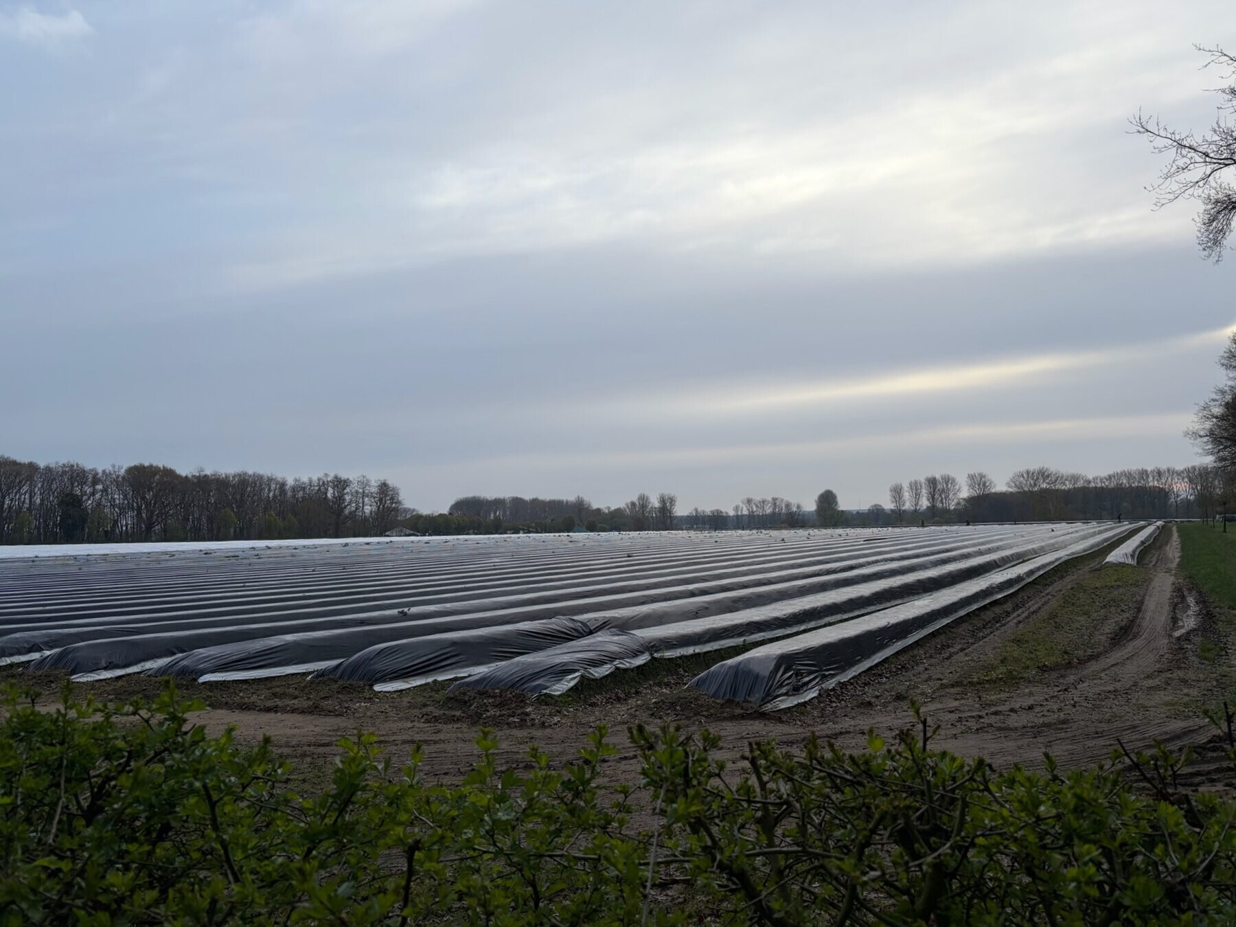 wir sind aber nur an der linde vorbeigegangen und haben uns von der bank nicht einladen lassen. wir sind dann durchs wäldchen rüber in die niederlande nach vlodrop gelaufen, dort wird bereits der erste spargel geerntet und die ersten spitzen ragen auch schon raus..