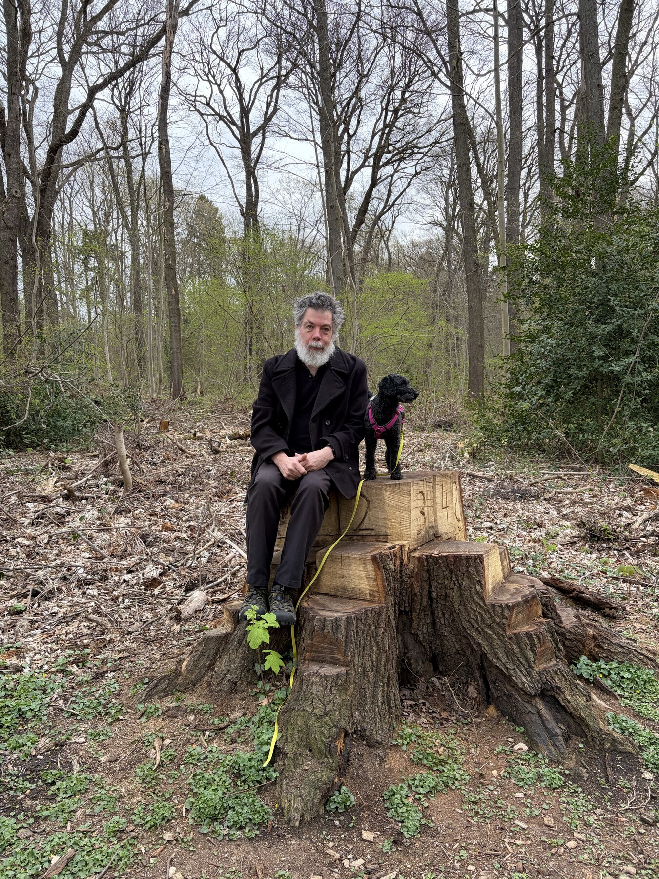 alt-text: frida und ich auf einem baumstumpf