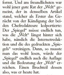 «Plausibilität ist keine Frage der Fakten, sondern des Stils», schrieb Raymond Chandler. In der Tat ist man ausgeliefert, was echt klingt. Ob man jetzt Wissenschaftsjargon als Beweis für Seriosität oder Fachchinesisch als Beweis für EDV-Kompetenz nimmt - man lebt in einer Welt von tausend Dingen, in der man nicht mehr nach Fakten, sondern nur nach Gehör prüfen kann: Klingt etwas zumindest plausibel? Unverzeihlich am «Spiegel» war, dass sie - in endlosen Verhandlungen - versuchten, die Sache zu vertuschen. Das zum Teil aus Arroganz. Aber auch zum Teil aus Hilflosigkeit: Wegen ihrer behaupteten Unfehlbarkeit hatte der «Spiegel» keine klare Idee, wie man eine Ente im Blatt korrigieren konnte.
