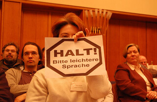 der vortrag funktionierte dann auch ungefähr fünf minuten ganz hervoragend. als die moderatorin sagte, sie sei gespannt was ich so erzählen würde, sagte ich das sei ich auch, ich tat so als ob mein bauch mich hinderte näher ans mikro zu treten, fragte rhetorisch als einer der organisatoren nach 3 minuten auf das rednerpult zukam, ob er mich jetzt rausschmeissen wolle (dabei wollte mir der gute mann nur die benutzung der maus und des laptop nahelegen) und erklärte, dass ich wirres.net lieber nicht auf dem beamer zeigen wollte, weil ich gehört hätte, dass manchen leuten beim anblick meines logos schlecht werden könne. aber dann hing ich auf einmal fest oder umgekehrt frei in der luft. ich wurde unsicher und hatte keine dias und notizen um mich festzuhalten. schrecklich, ix wurde unsicher und merkte, dass mich ganz viele leute anguckten die merken könnten, dass ich unsicher wurde, was mich noch unsicherer machte. anfänger sollten sich ohne leine nicht aufs offene meer herauswagen. ich fing mich dann zwar wieder, glaube ich, denn irgendwann hörte ich mich wieder reden, aber mein entschluss steht fest: entweder schweigen oder tiptop vorbereiten, bis ins letzte wort. falls mich nochmal jemand einladen sollte. die (gefühlt) sechsstündige diskussion im anschluss, mit fragen an denen ich mich verbal entlanghangeln konnte war dann aber doch ganz ok. vielleicht ist bei dem einen oder anderen was hängengeblieben und vielleicht habe ich ein bisschen neugierde geweckt auf das was tausende täglich so ins internet schreiben.