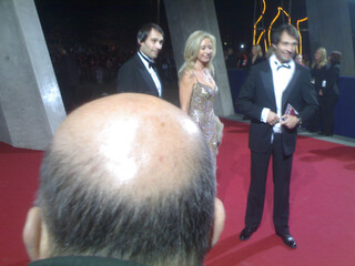 zwei stunden am roten teppich meine kamera-akkus leer geknipst. es ist jetzt 19:49 und ich habe keien ahnung wie die noch die ganzen promis in den saal schaufeln wollen. nicht mein problem. ich stand ziemlich am anfang des teppichs, da wo die promis aus ihren autos ausstiegen. weiter hinten ging es etwas heftiger zu.