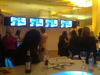 erstaunlich auch: obwohl hier leckere wlan- und ethernetkabel rumliegen gehen die hier mit ihren vodafone umts-karten ins internet. old school halt. die veranstaltung im fernsehen ist jetzt zuende. das schwenkfutter isst jetzt in ruhe und so gegen 24 uhr dürfen die presse-heinis rein und die übriggebliebenen belästigen. mehr unscharfe bilder dann ab 24 uhr hier.