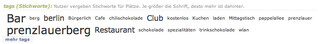 ich schweife ab. das was stephan uhrenbacher (kein unbeschriebenes blatt in sachen internet) da vorstellte hatte tatsächlich das potenzial mich leicht zu euphorisieren, vielleicht auch weil die idee so einfach ist. sie lässt sich, wie jede gute idee, in einem satz beschreiben oder in den sand am strand skizzieren (obwohl letzteres eigentlich eher für gute logos gilt). qype ist eine art gelbe seiten mit kommentar- und taggingfunktion. hinter qype steht eine ganz normale telefon-datenbank und jeder registrierte benutzer kann jede adresse, jede firma, jedes restaurant nach gutdünken bewerten, kommentieren und verschlagworten. den italiener bei mir um die ecke muss ich mir also nicht aus einer riesigen liste aus hunderten „restaurants“ raussuchen, sondern auch, wenn den italiener jemand so „getaggt“ hat auch nach „italiener“ oder „pizza“. ausserdem sehe ich nur an der wertung des restaurants, sondern auch an der kommentarhäufigkeit ob in dem laden etwas los ist. die tags können mir unter umständen bereits nachdem ich die postleitzahl eingegeben habe ein gutes bild geben von dem was dort los ist. so sieht das beispielsweise bei mir zuhause, bei „10437“ aus: