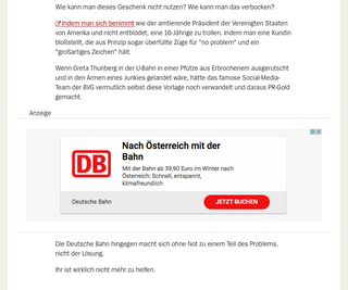 arno frank resümiert, dass der öffentlichkeitsarbeit der deutschen bahn „wirklich“ nicht mehr zu helfen ist. es zeigt sich aber auch, dass die art wie @SPIEGELONLINE werbeplätze verkauft auch totaler quark ist.