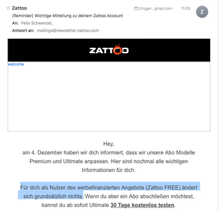wichtige mitteilung (zum zweiten mal innerhalb von zwölf tagen) von @zattoo: es „ändert sich grundsätzlich nichts“.