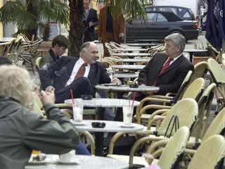 freitag in stuttgart, café planie. komisch, rezzo trinkt wasser (seit wann säuft der nicht mehr?), joschka trinkt nix.