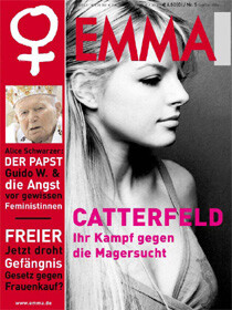 ich gehöre ja nicht gerade zur zielgruppe der emma. sonderlich oft lese ich sie auch nicht. gestern fiel mir bei einer freundin das aktuelle heft in die hand: auf dem titel yvonne catterfeld, drunter eine bild-„zeitungs“ würdige schlagzeile: „ihr kampf gegen die magersucht“. hmm. hab ich da was verpasst? emma schreibt über ein pop- und soap-sternchen aus dem bohlen-stall? die catterfeld hat magersucht? der artikel erwähnt bohlen mit keinem wort, klar, erklärt aber dafür die sache mit dem „kampf“. faszinierend die konsequente abwesenheit von witz und distanz in dem artikel — der leser und catterfeld werden einfach eingeseift: