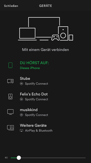 damit taucht der raspberry-pi-lautsprecher schon als spotify-connect lautsprecher in der spotify-app auf.
