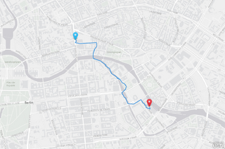 der fussweg ist relativ interessant, aber leider, wie man auf der karte auch sieht, ziemlich kompliziert. zweimal bin ich in sackgassen gelaufen, weil die gegend dort durchschnitten ist von kleingartensiedlungen, umzäunten privatgrundstücken und betriebsgeländen. witzigerweise bot mit apple’s karten applikation auf dem iphone gar keinen fussweg an, google-maps berechnete immerhin die zeit korrekt. aber ein paar wege die google vorschlug waren nicht zugänglich oder verzäunt.