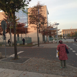 angela merkel heute mal zu fuss unterwegs ins kanzleramt, statt mit der limosine.